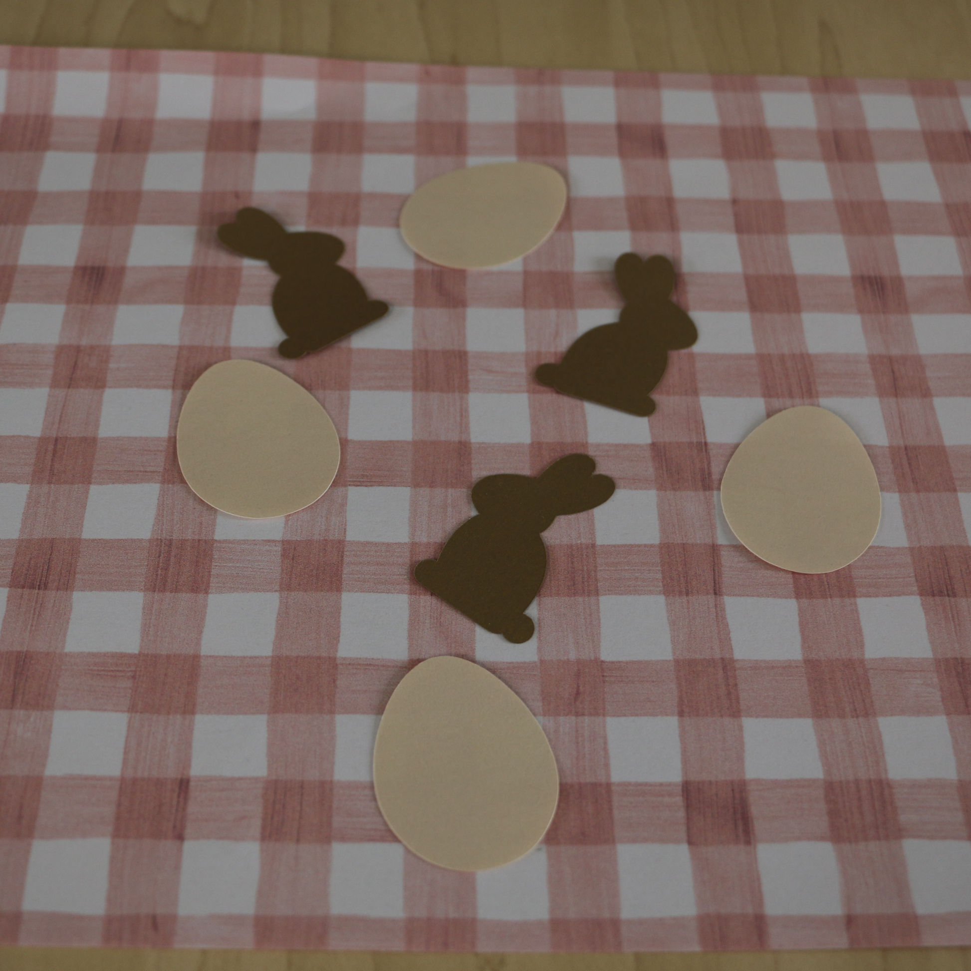 The bunnies are in Antique Gold and the eggs are a Pale Coral.