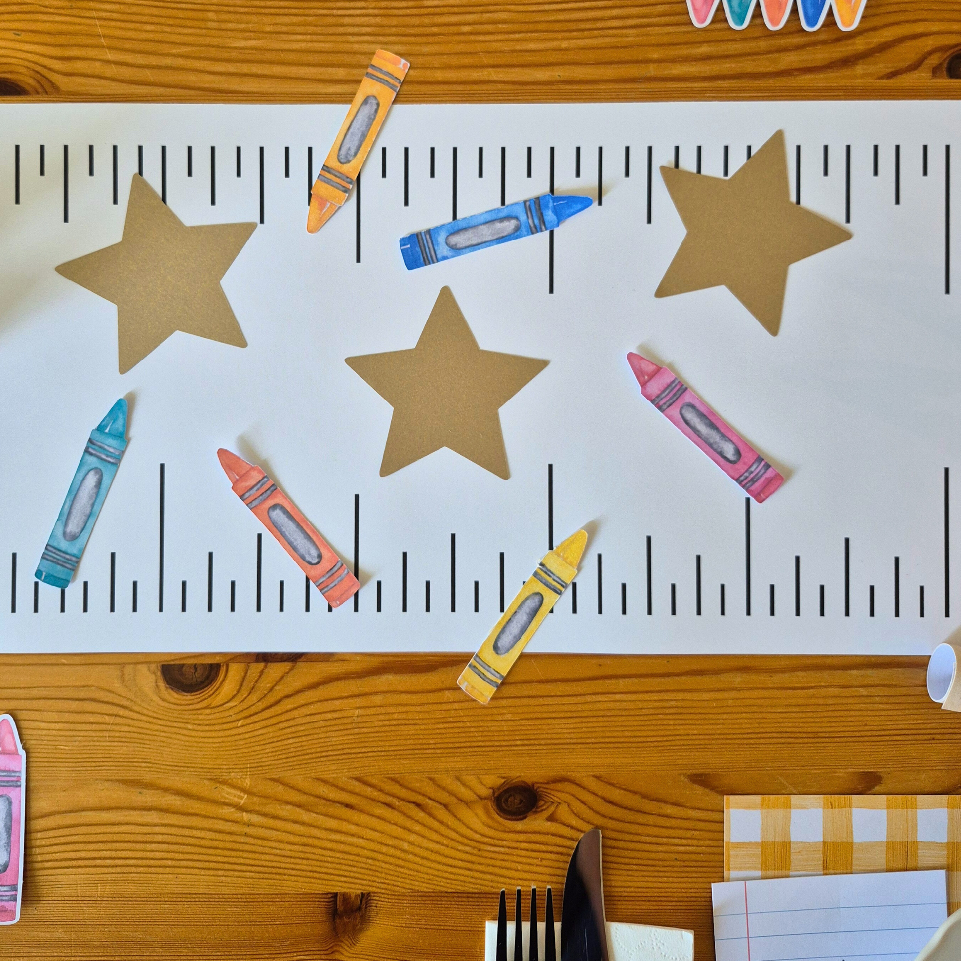 Everyone deserves a gold star! A fun mix of our bumper star confetti with coloured crayons to bring some school spirit to the table.