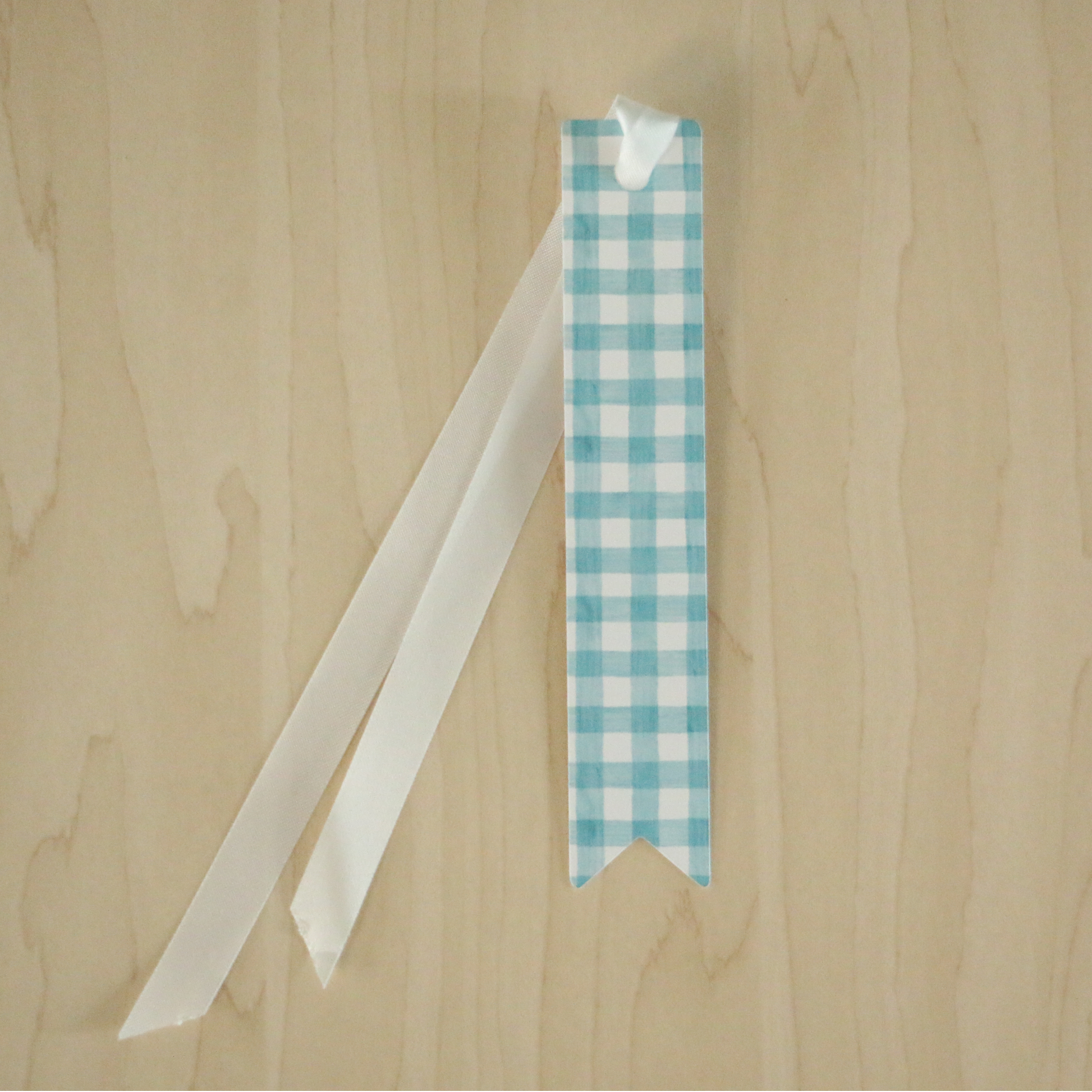 Included is a large tag to write your child's name, a die-cut "hophop" tag, a die-cut basket of eggs and a keepsake gingham bookmark. When you're finished with the tag, simply untie the ribbon and attach to the gingham bookmark and enjoy this addition to your Spring Summer reading.