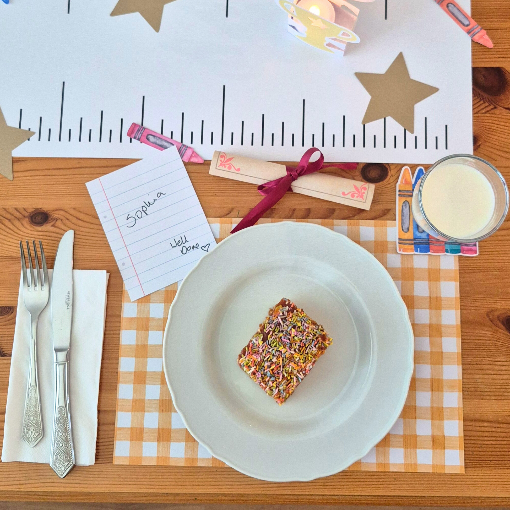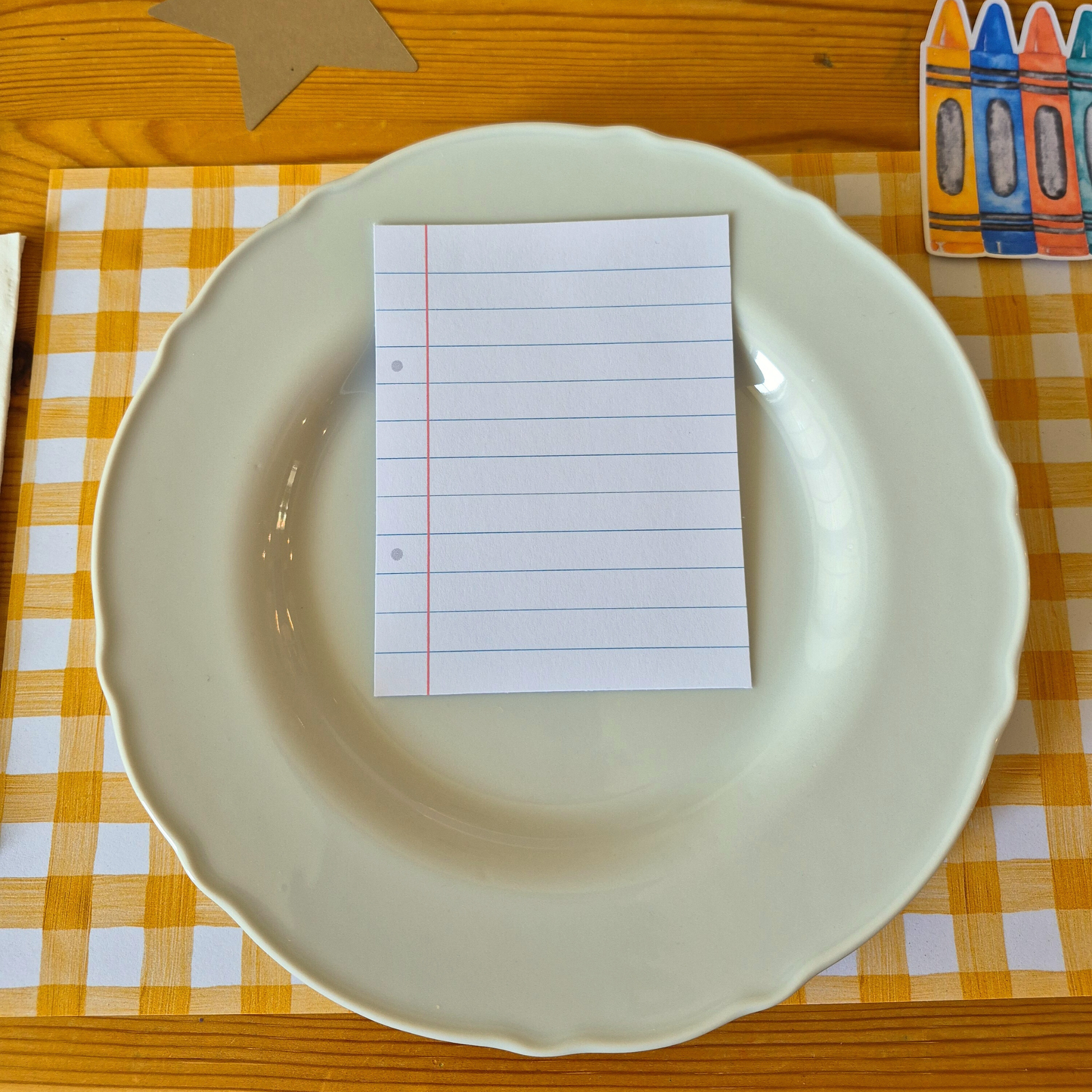 These vintage inspired notebook place cards are perfect for a name or note to complete your school party place settings. They're also perfect for little notes in lunch boxes.