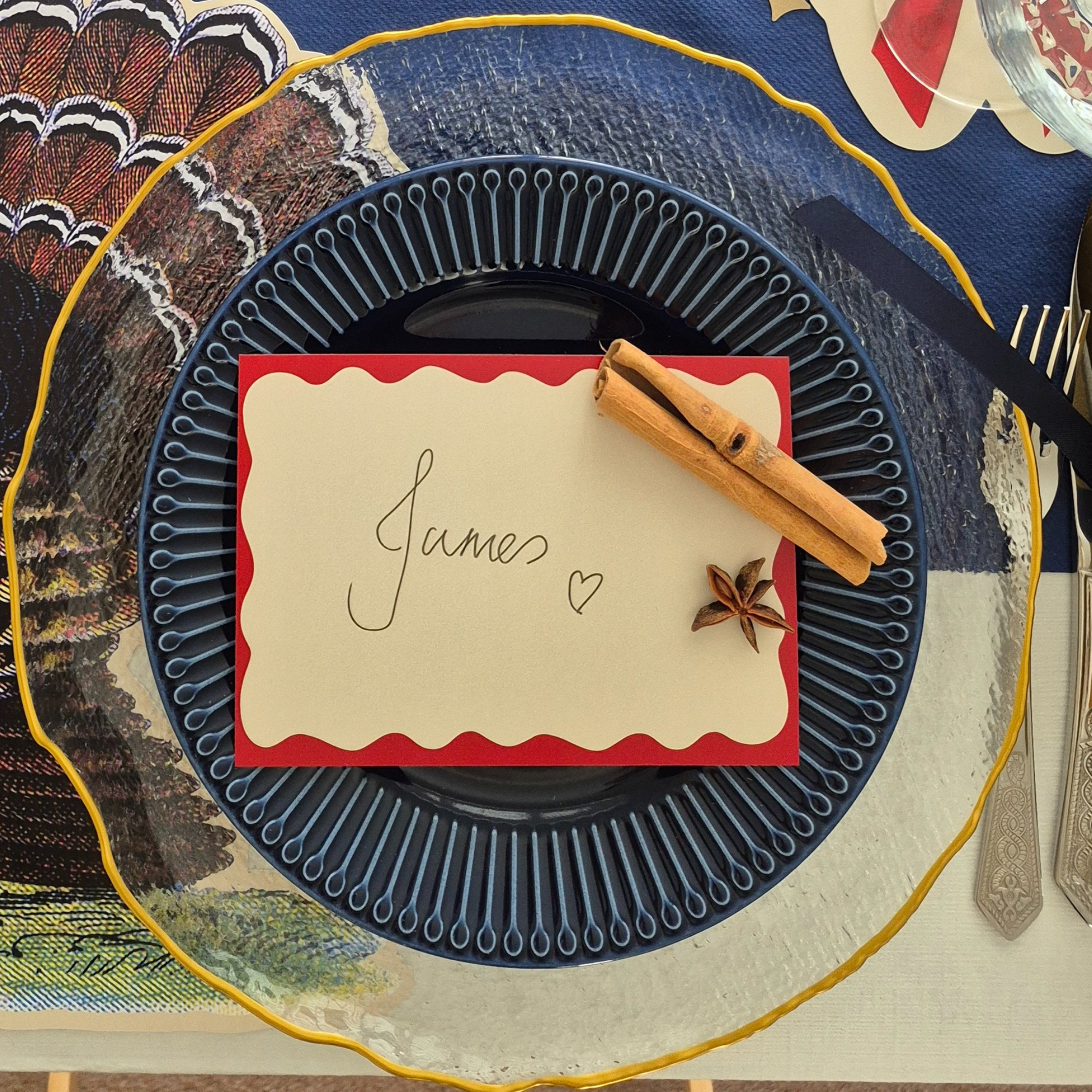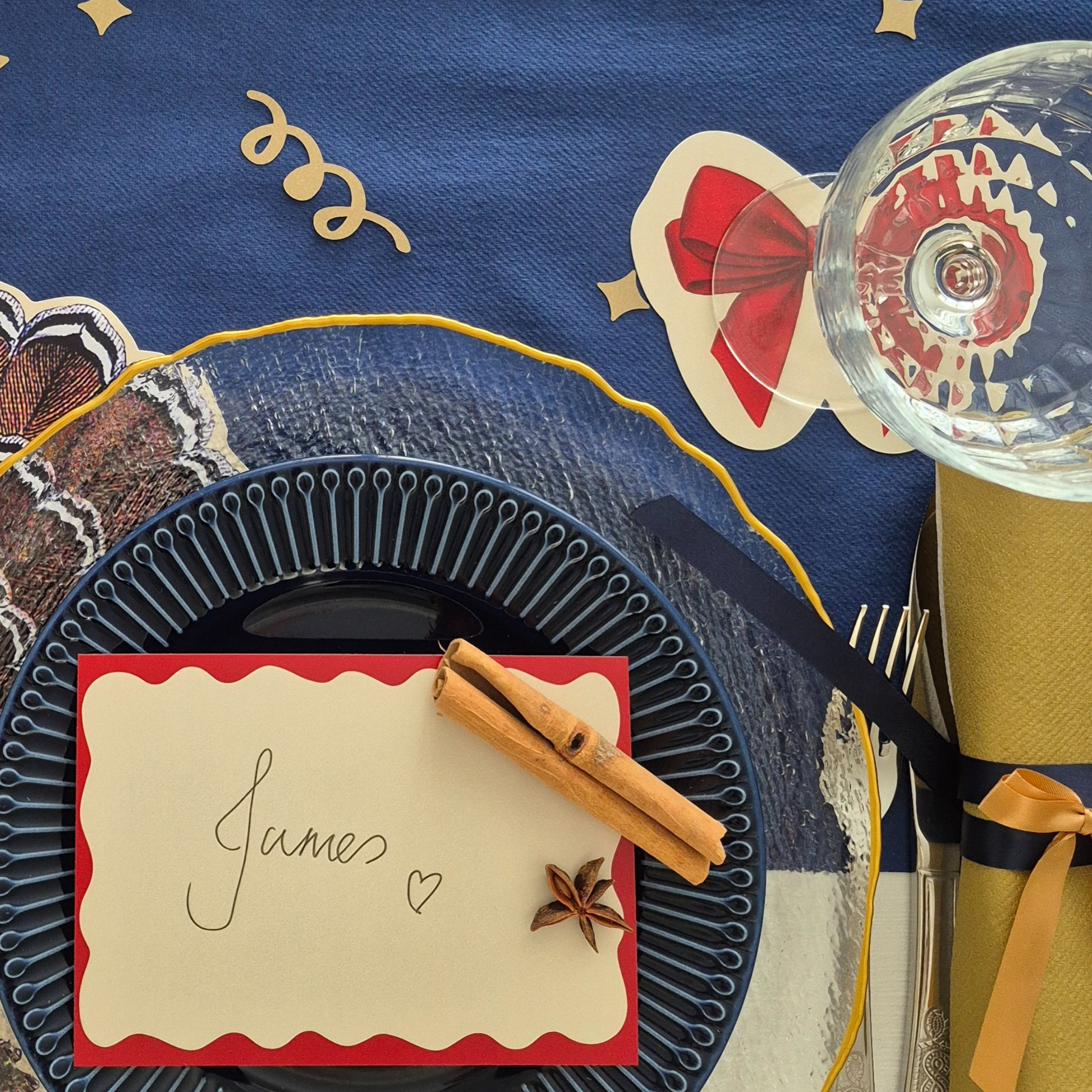 These wavy edged placename or menu cards are designed to coordinate with our bow coasters. They work great as a larger format place name or as a small menu card.