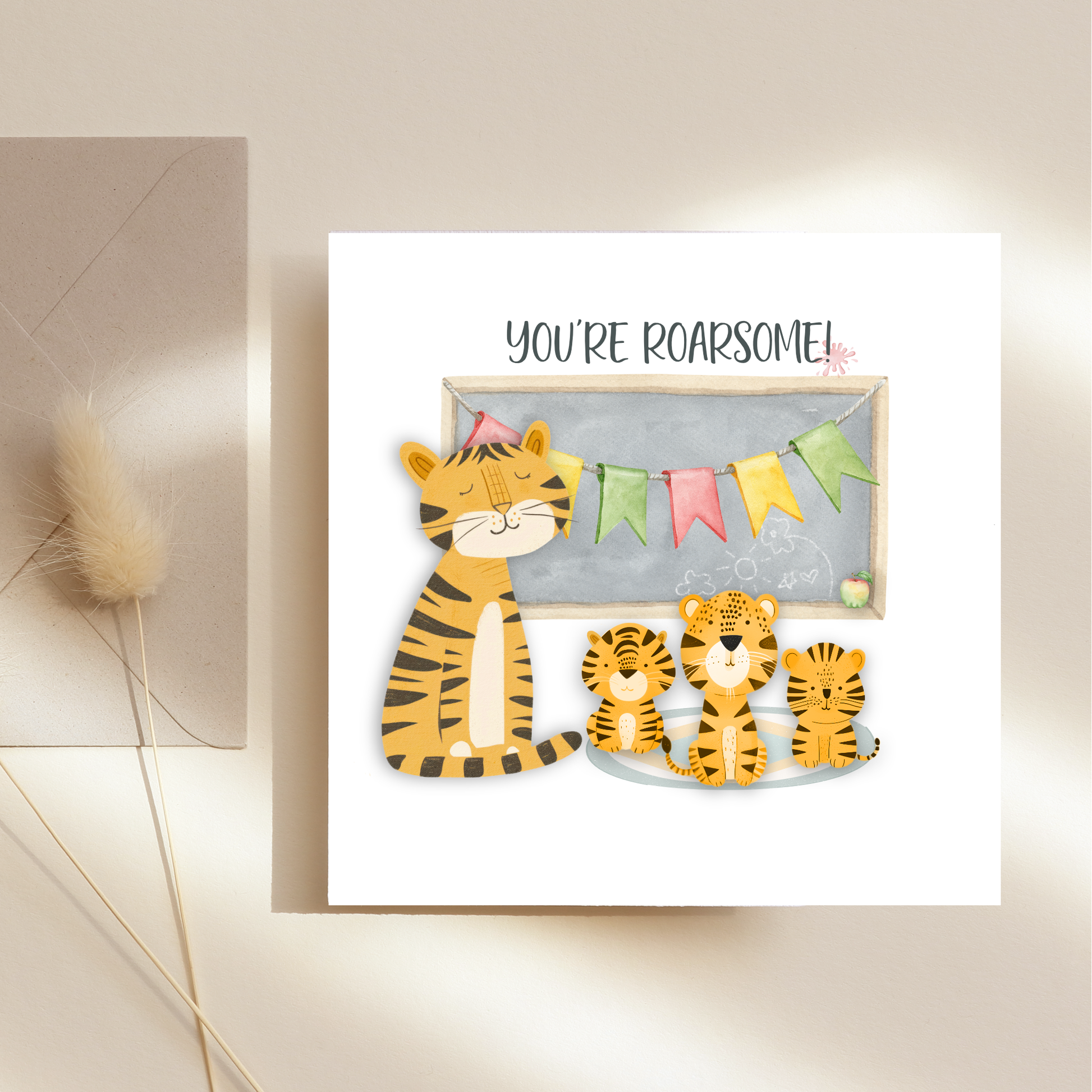 Bring a smile to a teacher's face with this terrific Tiger card. Roar! Perfect for that end of year thank you - or indeed anytime you'd like to show some appreciation. Why not download our Teacher Appreciation Activity Sheet to fill in and add to your card for that extra special touch.