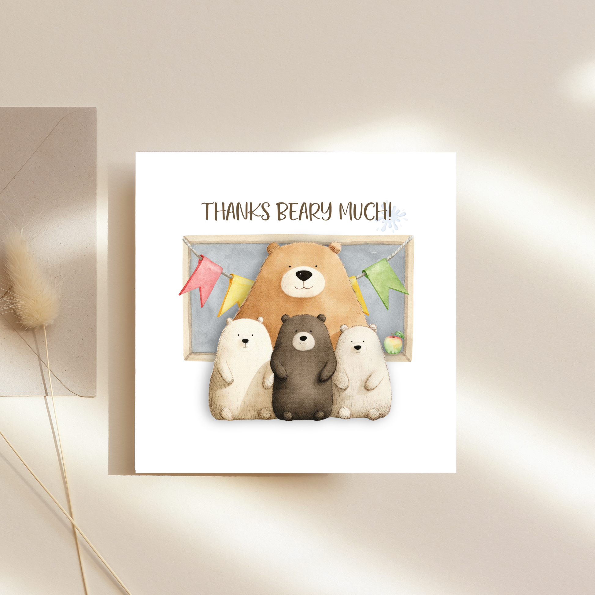 Bring a smile to a teacher's face with this adorable bear card. Perfect for that end of year thank you - or indeed anytime you'd like to show some appreciation. Why not download our Teacher Appreciation Activity sheet to fill in and add to your card for that extra special touch.