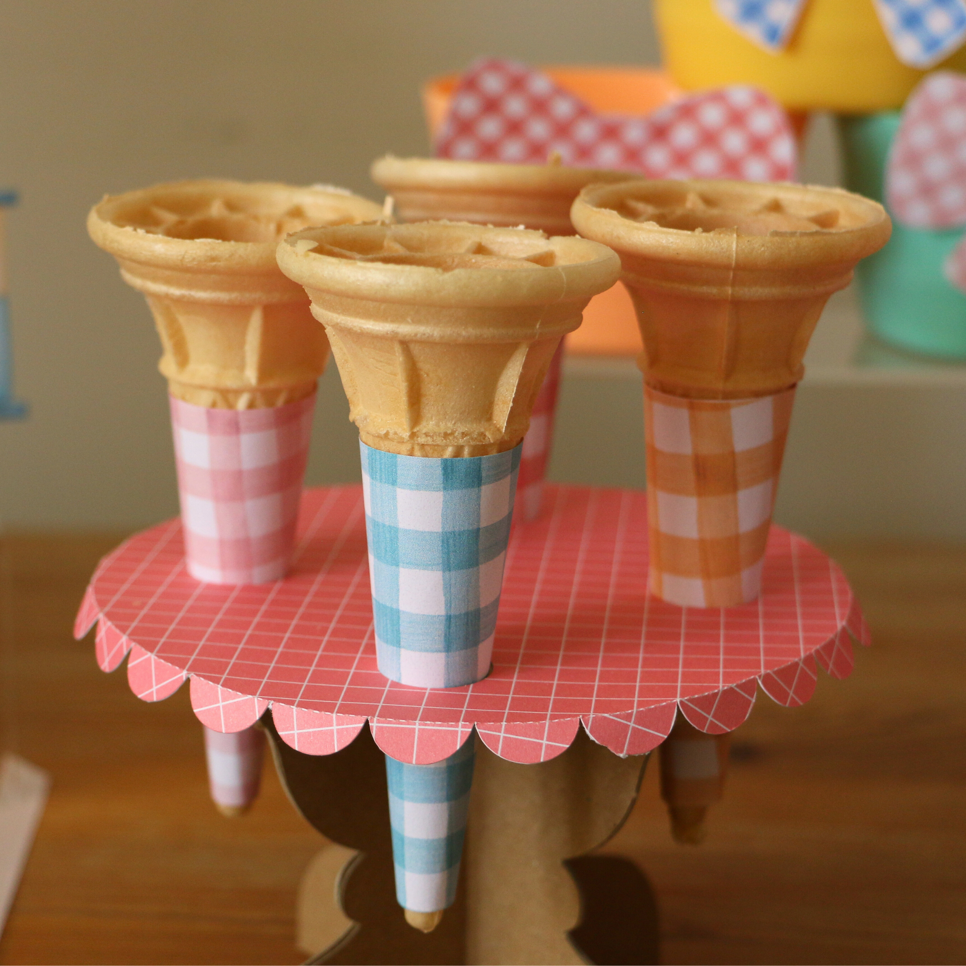 These super cute Ice Cream Cone wrappers or sleeves add an incredible touch to any ice cream affair! Why not keep a stash of them to use during the summer holidays with the kids. And adults love them just as much!